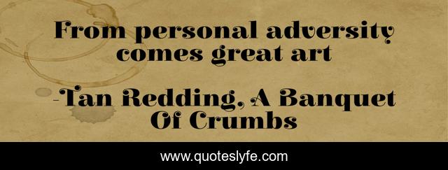 "Tan Redding, A Banquet Of Crumbs Quotes." Quoteslyfe.com, 2025. Sat. 06 Dec. 2025. <https://www.quoteslyfe.com/quote/From-personal-adversity-comes-great-art-66416>.