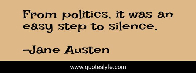 This page presents the quote "From politics, it was an easy step to silence.". Author of this quote is Jane Austen. This quote is about step, silence, easy,.