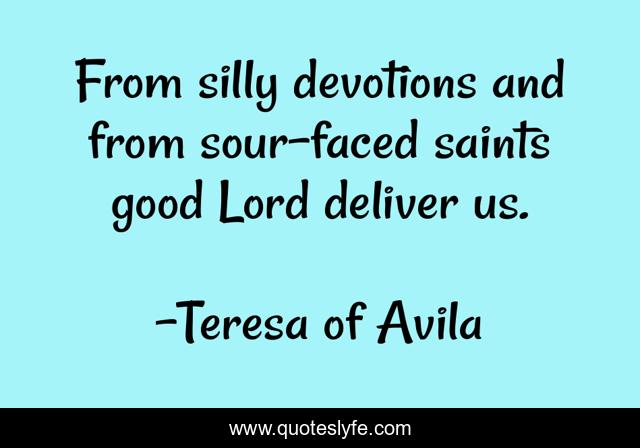 This page presents the quote "From silly devotions and from sour-faced saints good Lord deliver us.". Author of this quote is Teresa of Avila. .