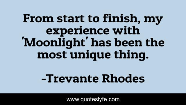 This page presents the quote "From start to finish, my experience with 'Moonlight' has been the most unique thing.". Author of this quote is Trevante Rhodes. This quote is about start, unique, finish,.