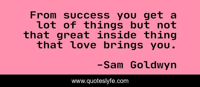 This page presents the quote "From success you get a lot of things but not that great inside thing that love brings you.". Author of this quote is Sam Goldwyn. This quote is about love, affection,.