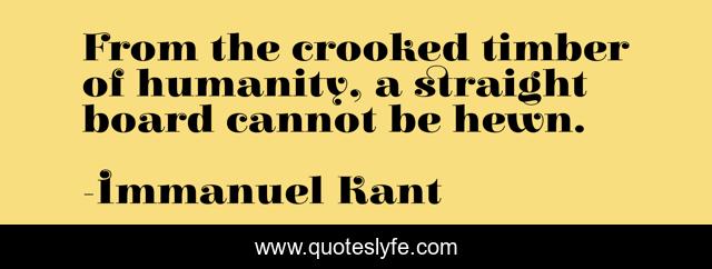 This page presents the quote "From the crooked timber of humanity, a straight board cannot be hewn.". Author of this quote is Immanuel Kant. This quote is about moralism, humanity,.