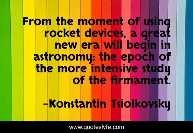 This page presents the quote "From the moment of using rocket devices, a great new era will begin in astronomy: the epoch of the more intensive study of the firmament.". Author of this quote is Konstantin Tsiolkovsky. This quote is about moment, study, great,.