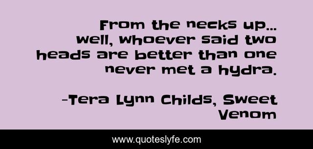 This page presents the quote "From the necks up... well, whoever said two heads are better than one never met a hydra.". Author of this quote is Tera Lynn Childs, Sweet Venom. This quote is about hydra, mythology, gretchen-sharpe,.