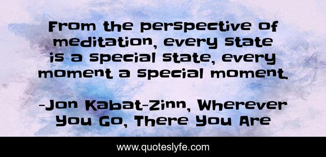 "Jon Kabat-Zinn, Wherever You Go, There You Are Quotes." Quoteslyfe.com, 2025. Sat. 06 Dec. 2025. <https://www.quoteslyfe.com/quote/From-the-perspective-of-meditation-every-state-218745>.