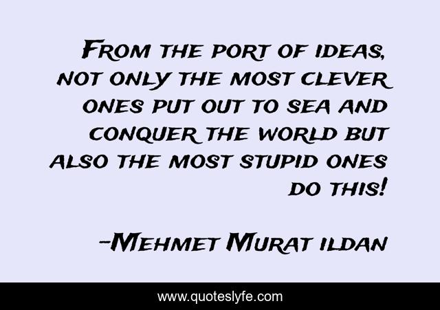 This page presents the quote "From the port of ideas, not only the most clever ones put out to sea and conquer the world but also the most stupid ones do this!". Author of this quote is Mehmet Murat ildan. .