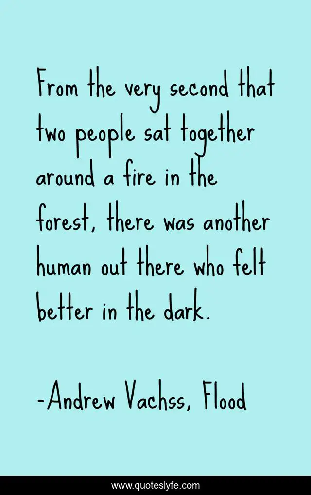This page presents the quote "From the very second that two people sat together around a fire in the forest, there was another human out there who felt better in the dark.". Author of this quote is Andrew Vachss, Flood. This quote is about darkness, grim,.