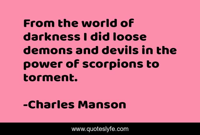 This page presents the quote "From the world of darkness I did loose demons and devils in the power of scorpions to torment.". Author of this quote is Charles Manson. .
