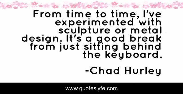 This page presents the quote "From time to time, I've experimented with sculpture or metal design. It's a good break from just sitting behind the keyboard.". Author of this quote is Chad Hurley. This quote is about good, sculpture, time,.