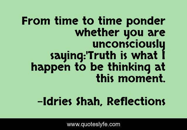 This page presents the quote "From time to time ponder whether you are unconsciously saying:'Truth is what I happen to be thinking at this moment.". Author of this quote is Idries Shah, Reflections. This quote is about thought, self-importance, ignorance, truth,.