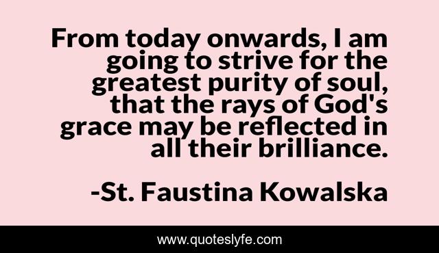 This page presents the quote "From today onwards, I am going to strive for the greatest purity of soul, that the rays of God's grace may be reflected in all their brilliance.". Author of this quote is St. Faustina Kowalska. This quote is about god, purity-of-heart, divine-grace, purity-of-soul,.