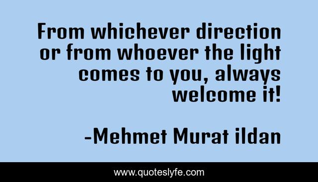 This page presents the quote "From whichever direction or from whoever the light comes to you, always welcome it!". Author of this quote is Mehmet Murat ildan. .