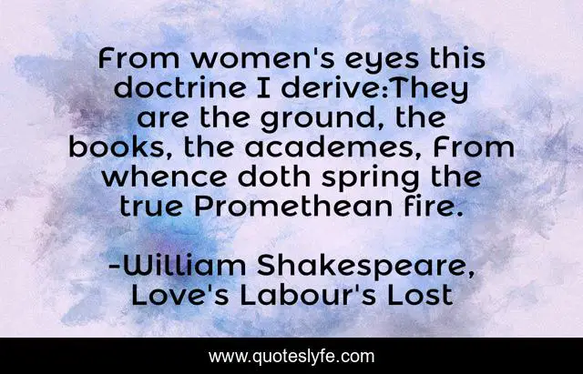 This page presents the quote "From women's eyes this doctrine I derive:They are the ground, the books, the academes, From whence doth spring the true Promethean fire.". Author of this quote is William Shakespeare, Love's Labour's Lost. .