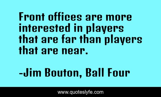 This page presents the quote "Front offices are more interested in players that are far than players that are near.". Author of this quote is Jim Bouton, Ball Four. This quote is about novelty, optimism,.