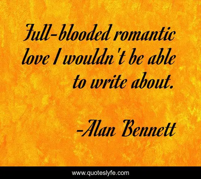 This page presents the quote "Full-blooded romantic love I wouldn't be able to write about.". Author of this quote is Alan Bennett. This quote is about write, love, able, affection,.