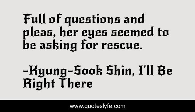 This page presents the quote "Full of questions and pleas, her eyes seemed to be asking for rescue.". Author of this quote is Kyung-Sook Shin, I'll Be Right There. This quote is about eyes, rescue,.