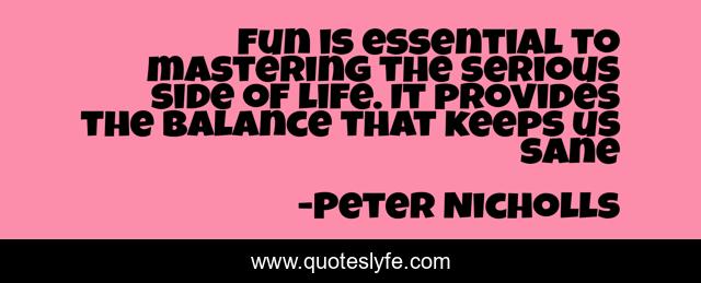 This page presents the quote "Fun is essential to mastering the serious side of life. It provides the balance that keeps us sane". Author of this quote is Peter Nicholls. This quote is about enthusiasm, inspirational, self-development,.