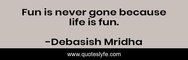 "Debasish Mridha Quotes." Quoteslyfe.com, 2025. Sat. 06 Dec. 2025. <https://www.quoteslyfe.com/quote/Fun-is-never-gone-because-life-is-237971>.
