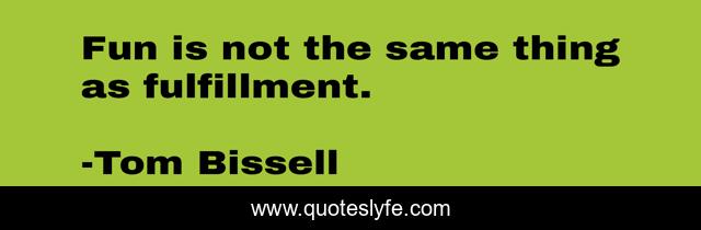 This page presents the quote "Fun is not the same thing as fulfillment.". Author of this quote is Tom Bissell. .