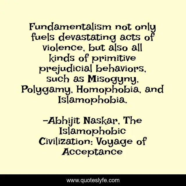 "Abhijit Naskar, The Islamophobic Civilization: Voyage of Acceptance Quotes." Quoteslyfe.com, 2025. Fri. 05 Dec. 2025. <https://www.quoteslyfe.com/quote/Fundamentalism-not-only-fuels-devastating-acts-of-26610>.