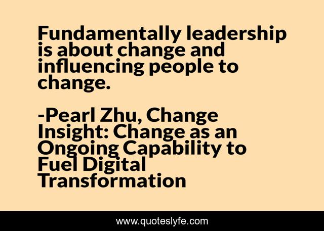 "Pearl Zhu, Change Insight: Change as an Ongoing Capability to Fuel Digital Transformation Quotes." Quoteslyfe.com, 2025. Sun. 14 Dec. 2025. <https://www.quoteslyfe.com/quote/Fundamentally-leadership-is-about-change-and-influencing-60081>.