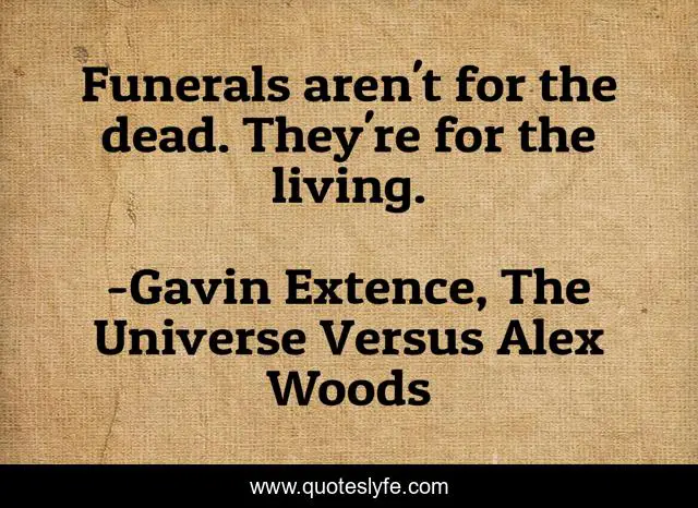 This page presents the quote "Funerals aren't for the dead. They're for the living.". Author of this quote is Gavin Extence, The Universe Versus Alex Woods. This quote is about living, funeral, death, funerals,.