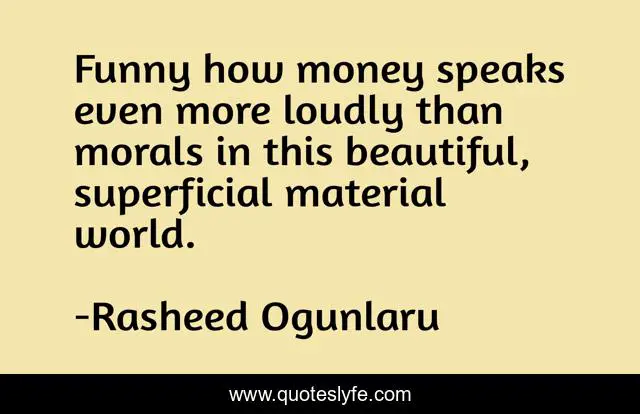 "Rasheed Ogunlaru Quotes." Quoteslyfe.com, 2025. Mon. 08 Dec. 2025. <https://www.quoteslyfe.com/quote/Funny-how-money-speaks-even-more-loudly-79997>.