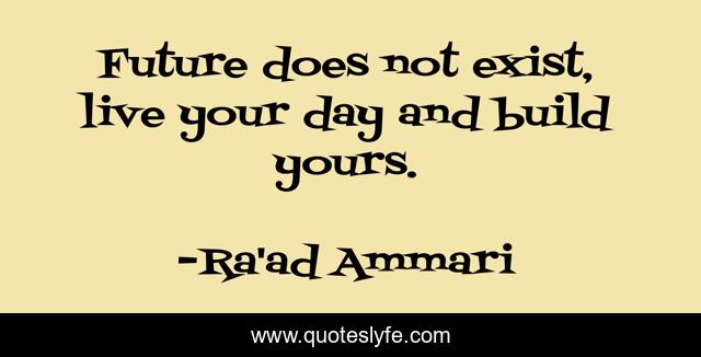 This page presents the quote "Future does not exist, live your day and build yours.". Author of this quote is Ra'ad Ammari. This quote is about life, future, exist,.