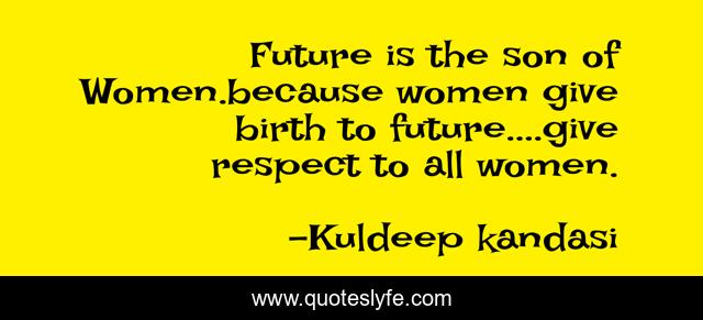 This page presents the quote "Future is the son of Women.because women give birth to future....give respect to all women.". Author of this quote is Kuldeep kandasi. This quote is about respect, future, women,.