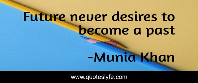 This page presents the quote "Future never desires to become a past". Author of this quote is Munia Khan. This quote is about desire, future-past, desires, wisdom, past, future, time, become,.