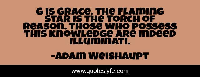 This page presents the quote "G is Grace, the Flaming Star is the Torch of Reason. Those who possess this knowledge are indeed Illuminati.". Author of this quote is Adam Weishaupt. This quote is about reason, star, grace,.