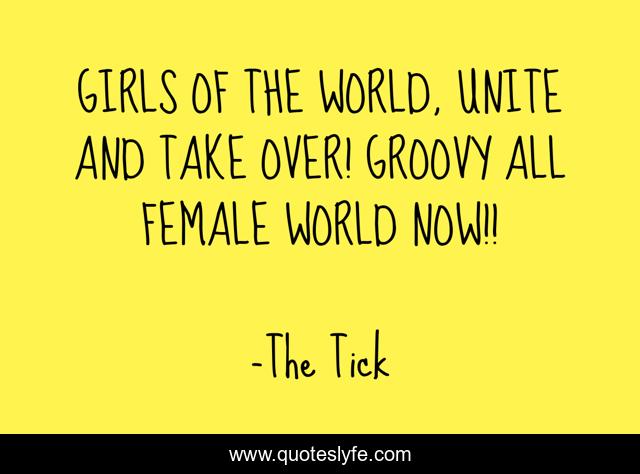 This page presents the quote "GIRLS OF THE WORLD, UNITE AND TAKE OVER! GROOVY ALL FEMALE WORLD NOW!!". Author of this quote is The Tick. .