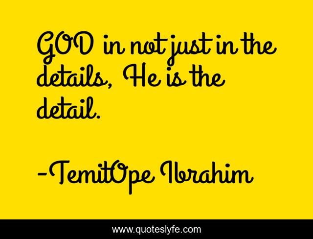 "TemitOpe Ibrahim Quotes." Quoteslyfe.com, 2025. Fri. 05 Dec. 2025. <https://www.quoteslyfe.com/quote/GOD-in-not-just-in-the-details-38245>.