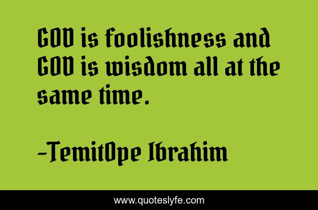 "TemitOpe Ibrahim Quotes." Quoteslyfe.com, 2025. Mon. 08 Dec. 2025. <https://www.quoteslyfe.com/quote/GOD-is-foolishness-and-GOD-is-wisdom-38074>.