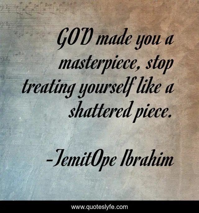 "TemitOpe Ibrahim Quotes." Quoteslyfe.com, 2025. Sat. 06 Dec. 2025. <https://www.quoteslyfe.com/quote/GOD-made-you-a-masterpiece-stop-treating-84044>.