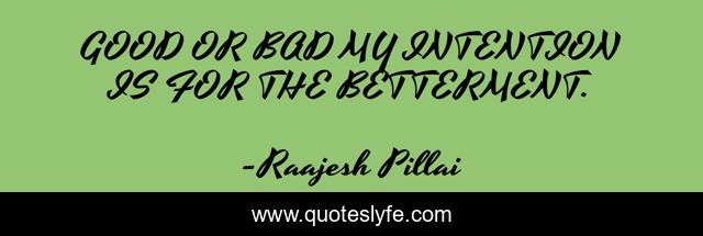 This page presents the quote "GOOD OR BAD MY INTENTION IS FOR THE BETTERMENT.". Author of this quote is Raajesh Pillai. .