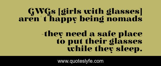 This page presents the quote "GWGs [girls with glasses] aren't happy being nomads". Author of this quote is they need a safe place to put their glasses while they sleep.. This quote is about girl with glasses: my optic history, marissa walsh,.