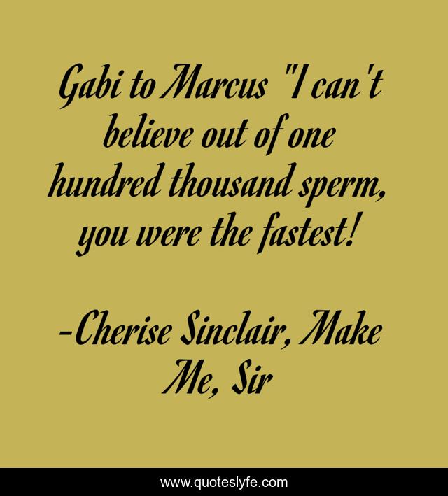 This page presents the quote "Gabi to Marcus "I can't believe out of one hundred thousand sperm, you were the fastest!". Author of this quote is Cherise Sinclair, Make Me, Sir. This quote is about humor, reproduction,.