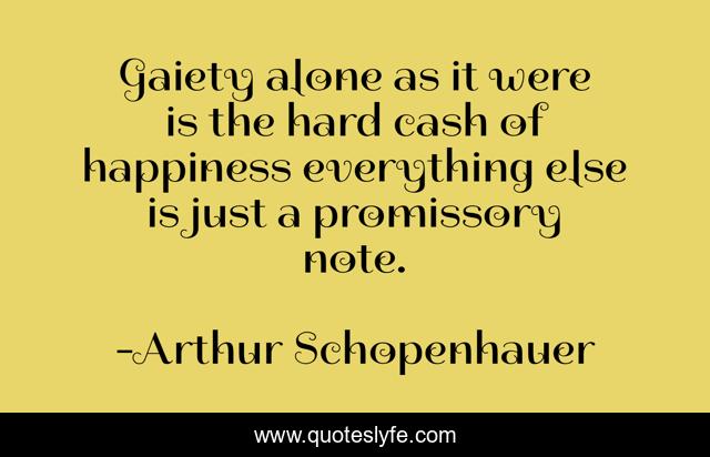 This page presents the quote "Gaiety alone as it were is the hard cash of happiness everything else is just a promissory note.". Author of this quote is Arthur Schopenhauer. .