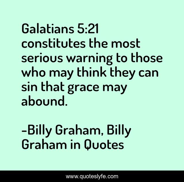 This page presents the quote "Galatians 5:21 constitutes the most serious warning to those who may think they can sin that grace may abound.". Author of this quote is Billy Graham, Billy Graham in Quotes. This quote is about sin, billy-graham,.