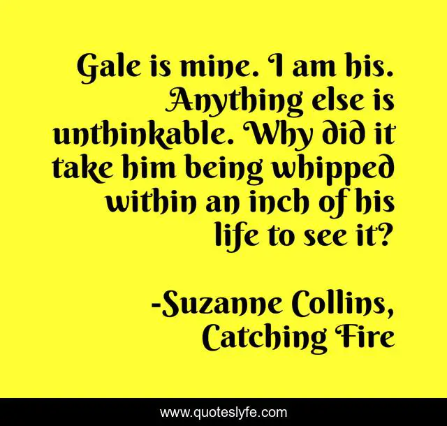 "Suzanne Collins, Catching Fire Quotes." Quoteslyfe.com, 2025. Tue. 09 Dec. 2025. <https://www.quoteslyfe.com/quote/Gale-is-mine-I-am-his-Anything-235021>.