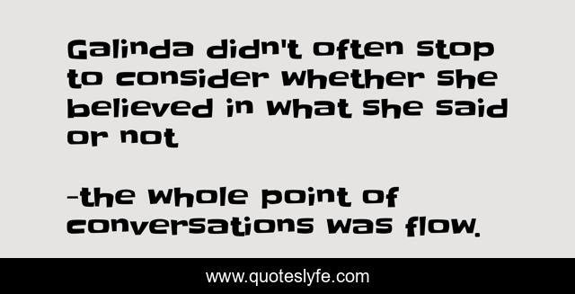"the whole point of conversations was flow. Quotes." Quoteslyfe.com, 2025. Sat. 06 Dec. 2025. <https://www.quoteslyfe.com/quote/Galinda-didn-t-often-stop-to-consider-258057>.
