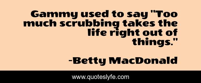 This page presents the quote "Gammy used to say "Too much scrubbing takes the life right out of things."". Author of this quote is Betty MacDonald. This quote is about control, self,.