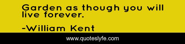 This page presents the quote "Garden as though you will live forever.". Author of this quote is William Kent. This quote is about live, garden,.