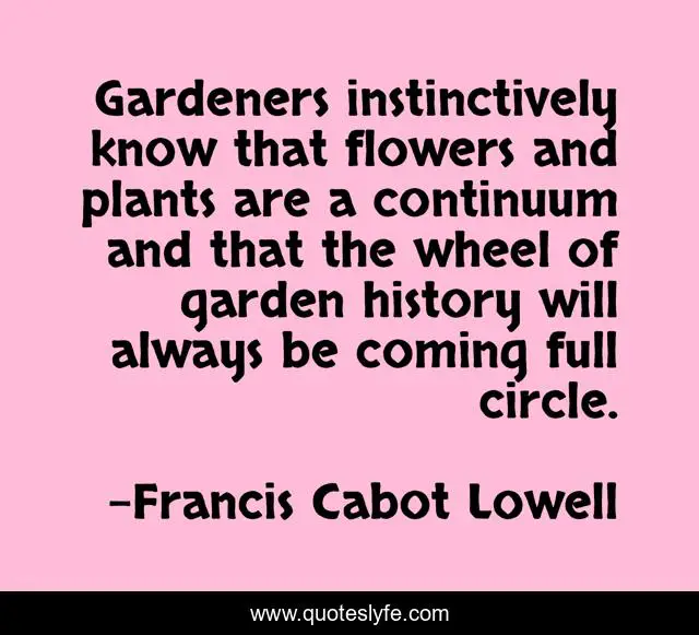 "Francis Cabot Lowell Quotes." Quoteslyfe.com, 2025. Mon. 08 Dec. 2025. <https://www.quoteslyfe.com/quote/Gardeners-instinctively-know-that-flowers-and-plants-304003>.
