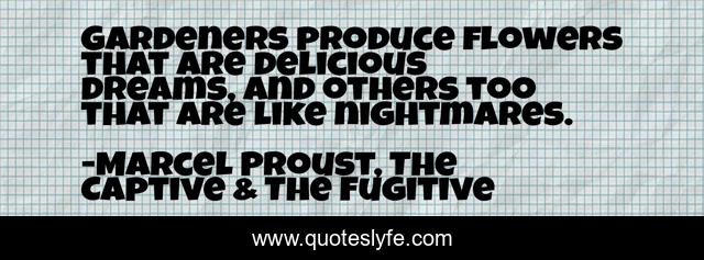 "Marcel Proust, The Captive & The Fugitive Quotes." Quoteslyfe.com, 2025. Mon. 08 Dec. 2025. <https://www.quoteslyfe.com/quote/Gardeners-produce-flowers-that-are-delicious-dreams-246841>.