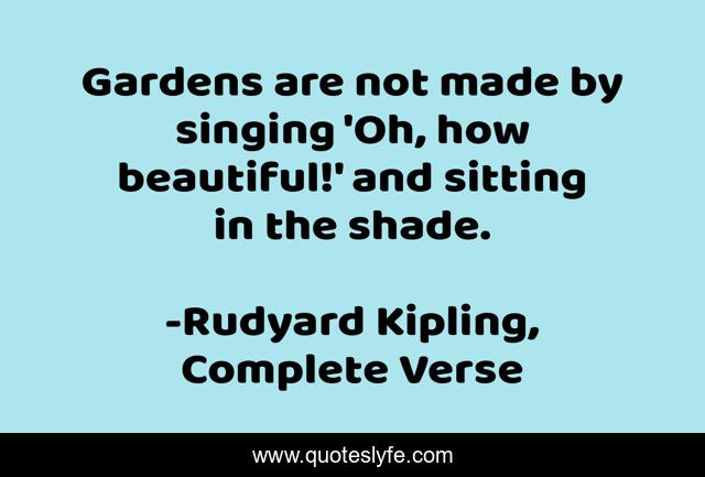 This page presents the quote "Gardens are not made by singing 'Oh, how beautiful!' and sitting in the shade.". Author of this quote is Rudyard Kipling, Complete Verse. This quote is about work, gardens, diligence,.