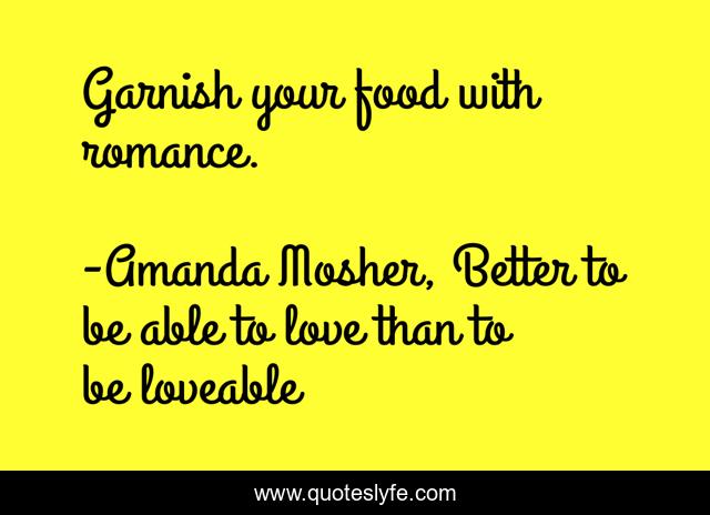 "Amanda Mosher, Better to be able to love than to be loveable Quotes." Quoteslyfe.com, 2025. Mon. 08 Dec. 2025. <https://www.quoteslyfe.com/quote/Garnish-your-food-with-romance-168183>.