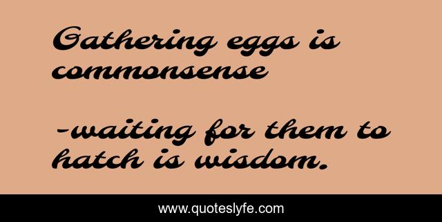 This page presents the quote "Gathering eggs is commonsense". Author of this quote is waiting for them to hatch is wisdom.. .