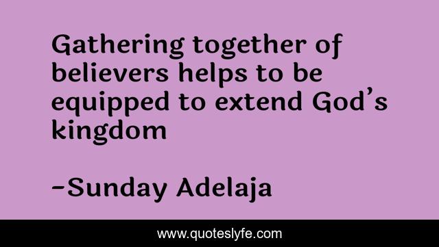 This page presents the quote "Gathering together of believers helps to be equipped to extend God’s kingdom". Author of this quote is Sunday Adelaja. This quote is about kingdom, extend, equipped,.
